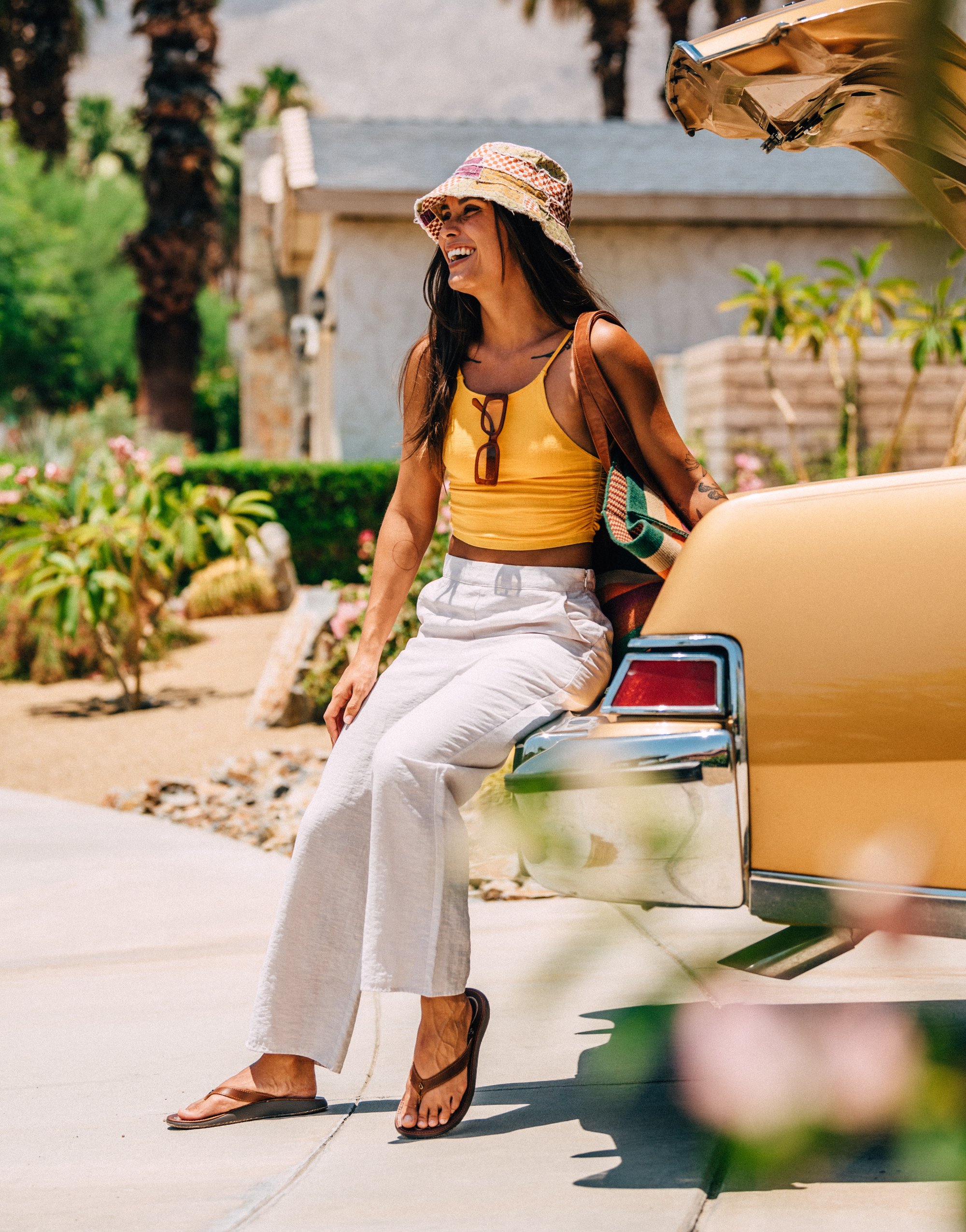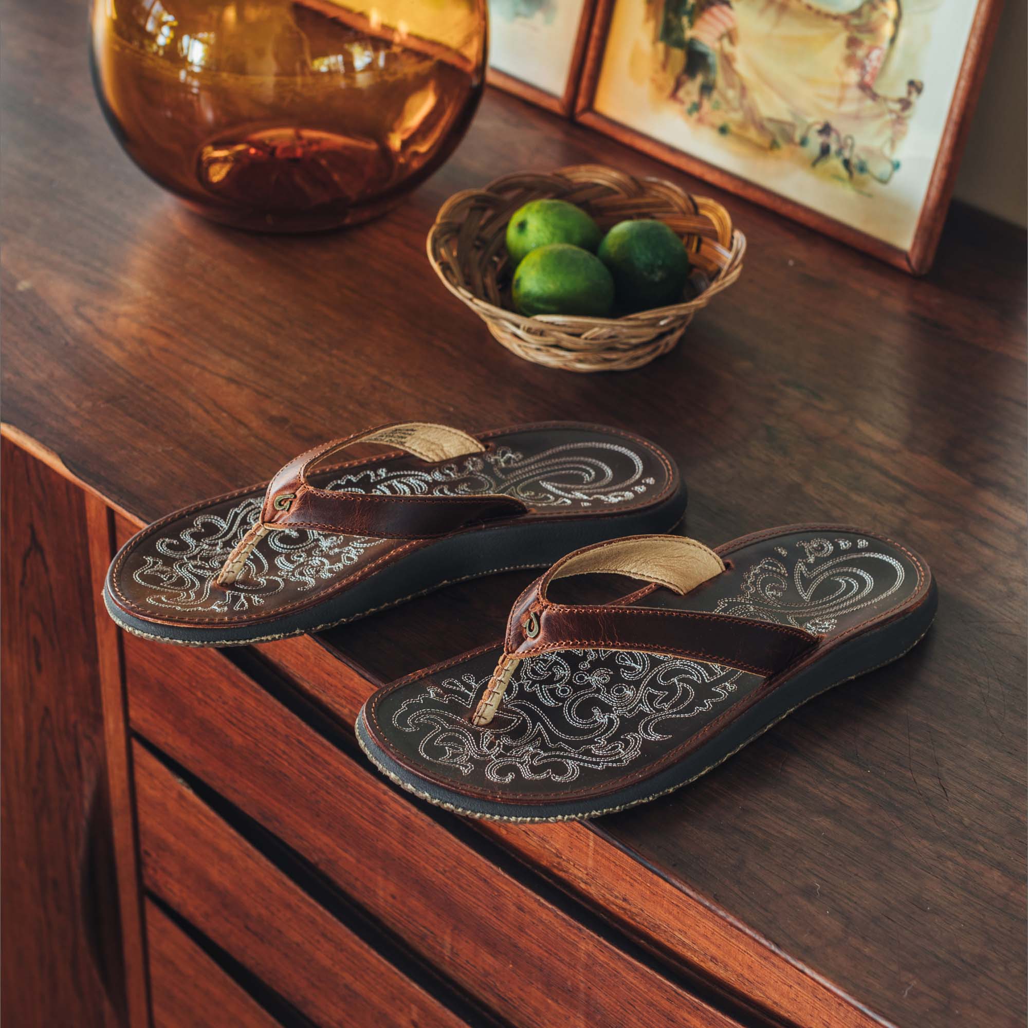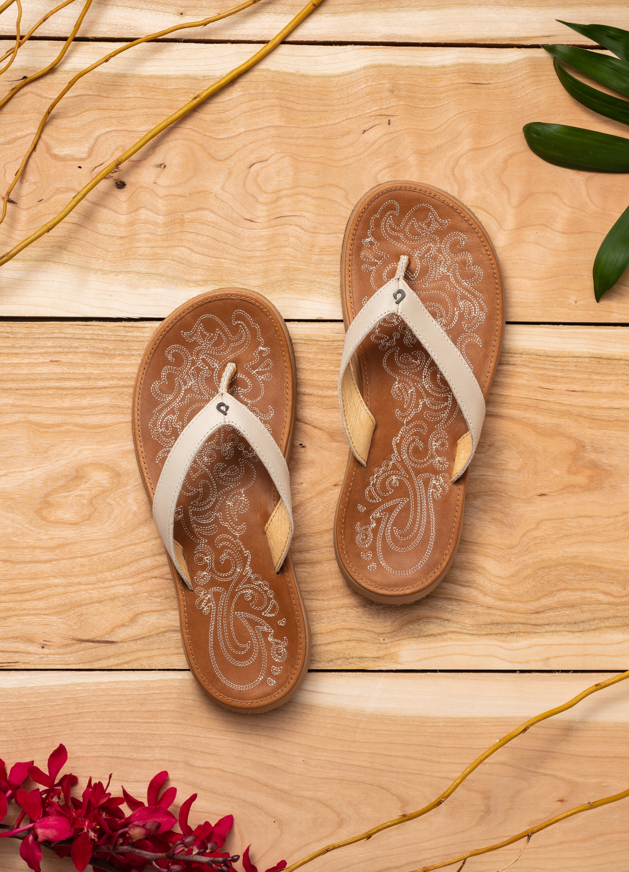 In 1833, Mexican vaqueros taught Hawaiians how to manage cattle. Since then, the paniolo (cowboy) culture has thrived in Hawai‘i, especially on Maui and the Big Island, where it remains vibrant today. Our Paniolo sandal taps in that timeless upcountry aesthetic and sense of adventure with its embroidered footbed artwork inspired by saddle-stitch detailing.